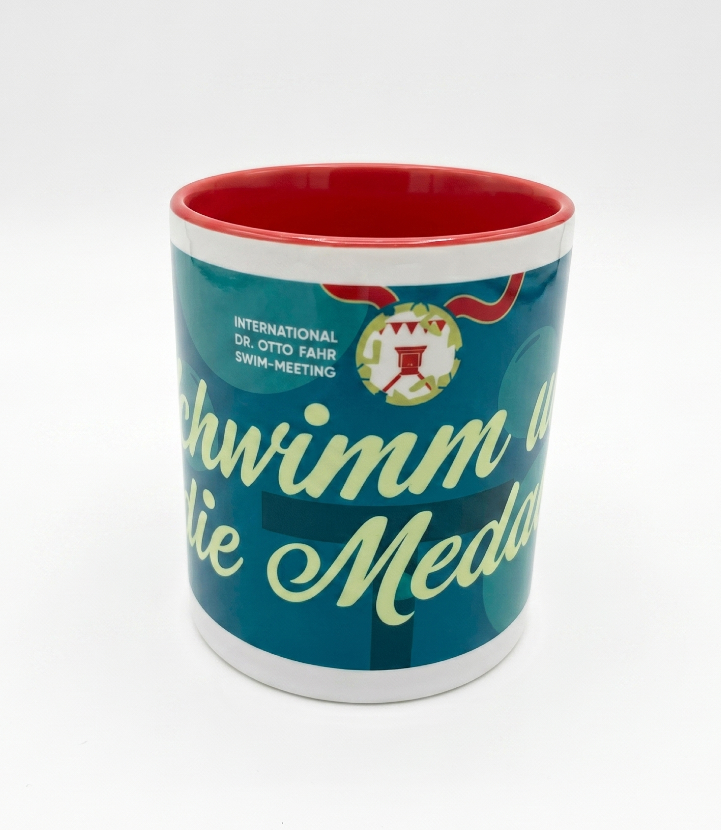Tasse zum Internationalen Dr. Otto Fahr SWIM-MEETING aus Keramik und fasst 340 ml.